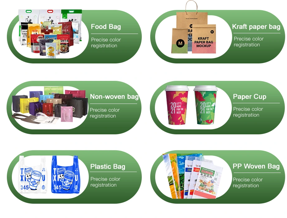 Επεξεργάζεται αποτελεσματικά διάφορα υλικά όπως PE, BOPP, PET, CPP και χαρτί, καθιστώντας το ιδανικό για συσκευασίες τροφίμων, τσάντες αγορών, ετικέτες και διάφορες εφαρμογές ευέλικτης συσκευασίας.